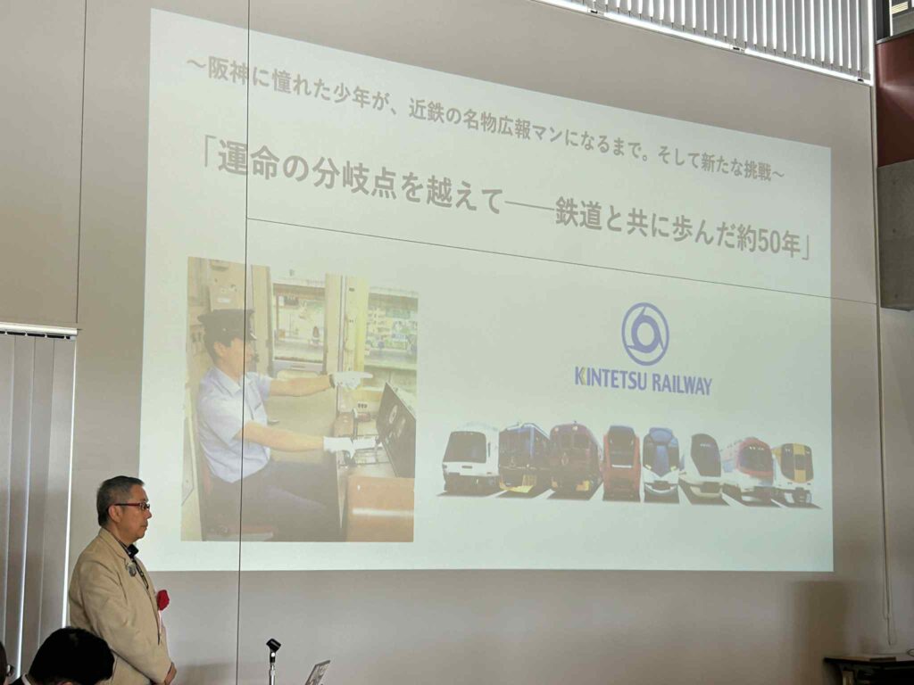 私からは、鉄道が単なる移動手段にとどまらず、地域の文化・観光・産業をつなぐ重要な役割を担ってきた歴史、そして私自身が近鉄の現場や広報の最前線で経験してきた実例を交えながら、地方鉄道の魅力と可能性についてお話ししました。とりわけ「鉄道は地域の人々の生活を支え、未来を創るインフラである」という視点を強調し、鉄道と地域がともに発展するために必要な工夫や挑戦について触れました。