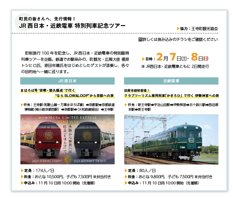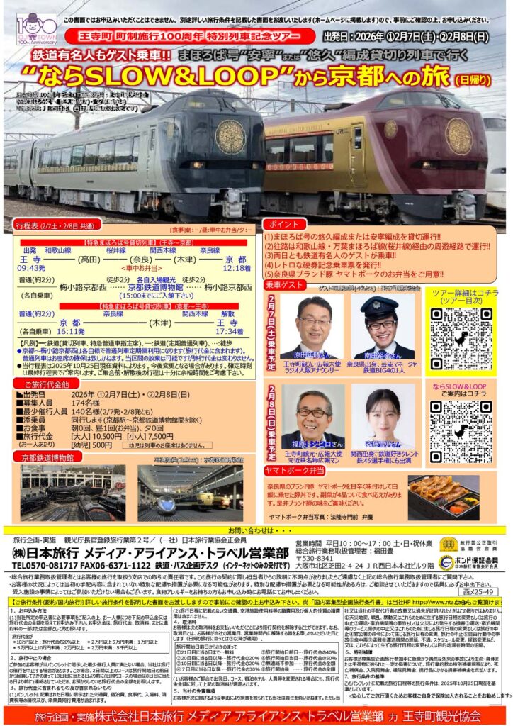 王寺町100周年記念 特別臨時列車ツアー 参加者募集!