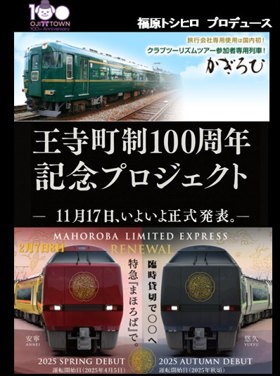 ぜひこの機会に、100周年の王寺町から特別列車で出発進行!