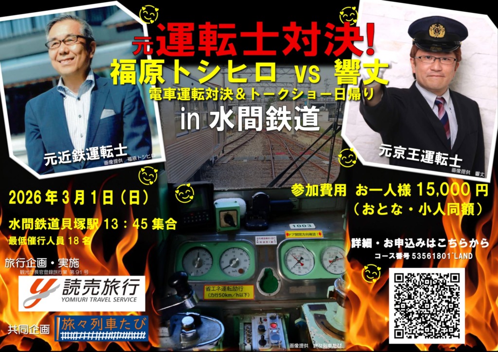 電車運転士 禁断のガチ対決 & オフレコ濃厚トークショー《日帰り》
